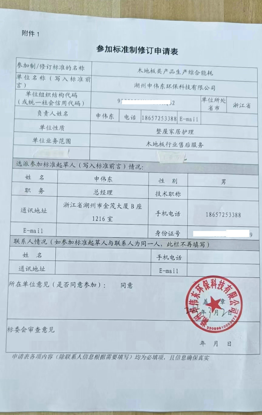 湖州申偉東環(huán)??萍加邢薰緲s幸之至獲得國家《行業(yè)》標(biāo)準(zhǔn)制修訂起草單位資格。借此機(jī)會工匠哥代表誓將扛起木地板售后服務(wù)大旗事業(yè)推向更高層面。